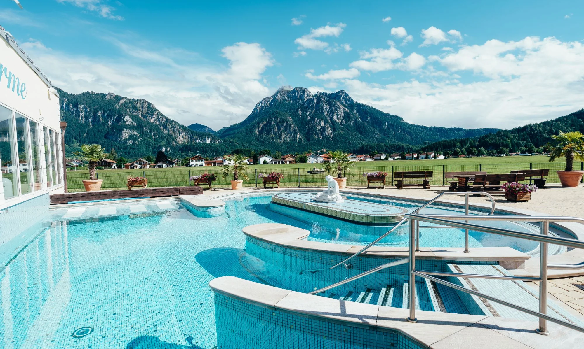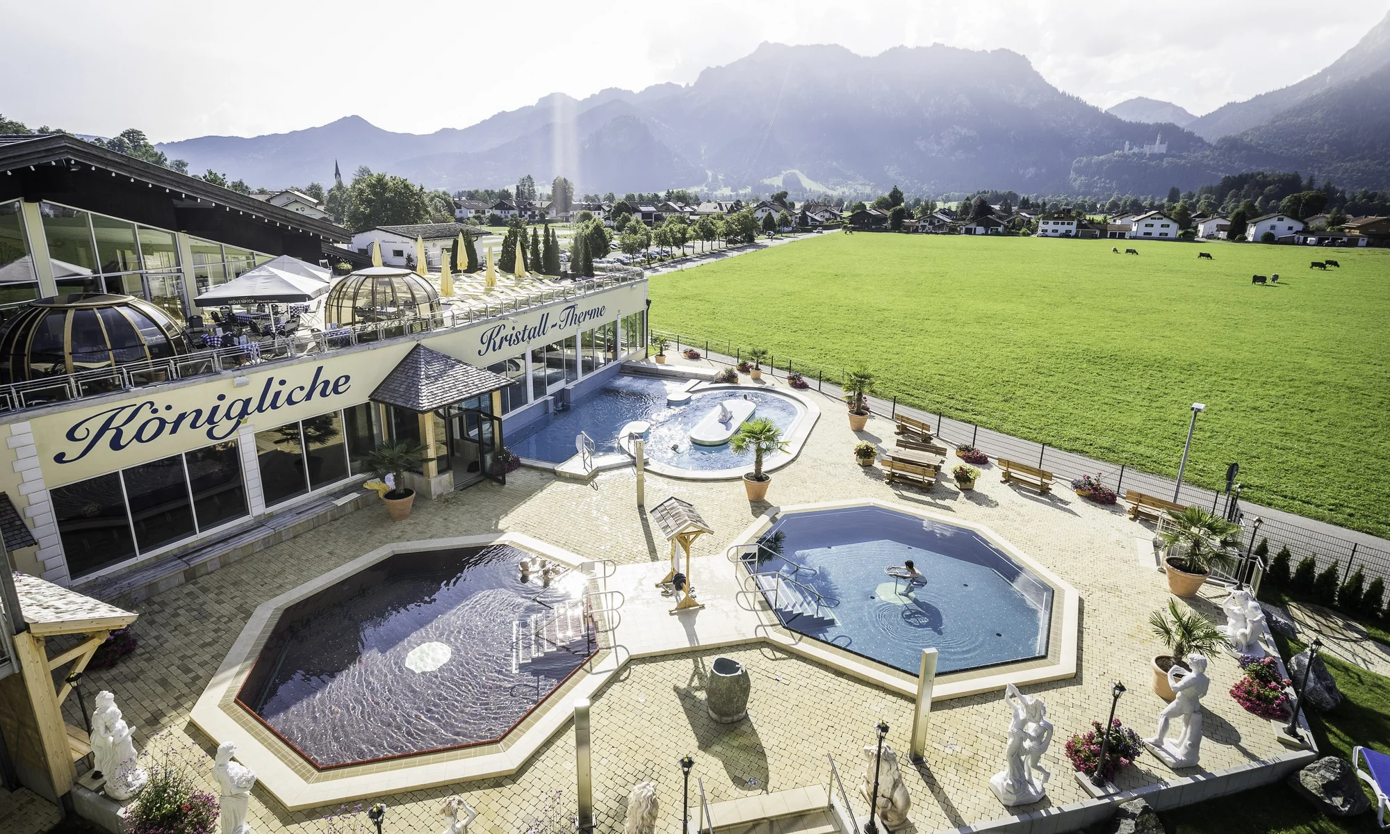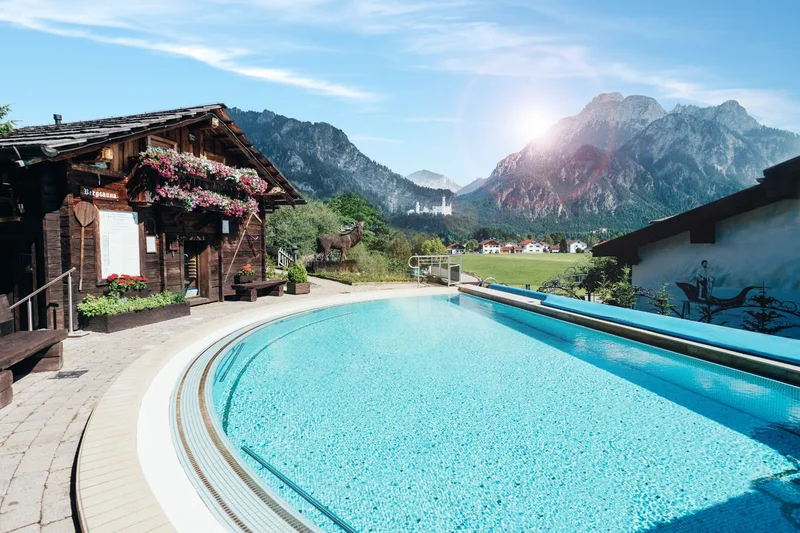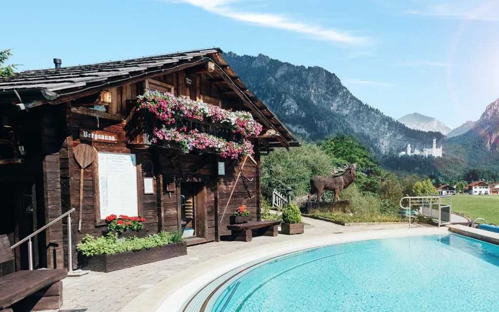 Ob beim Baden, Entspannen oder Saunieren - überall haben Sie einen einmaligen Blick auf die Königsschlösser Neuschwanstein und Hohenschwangau.
