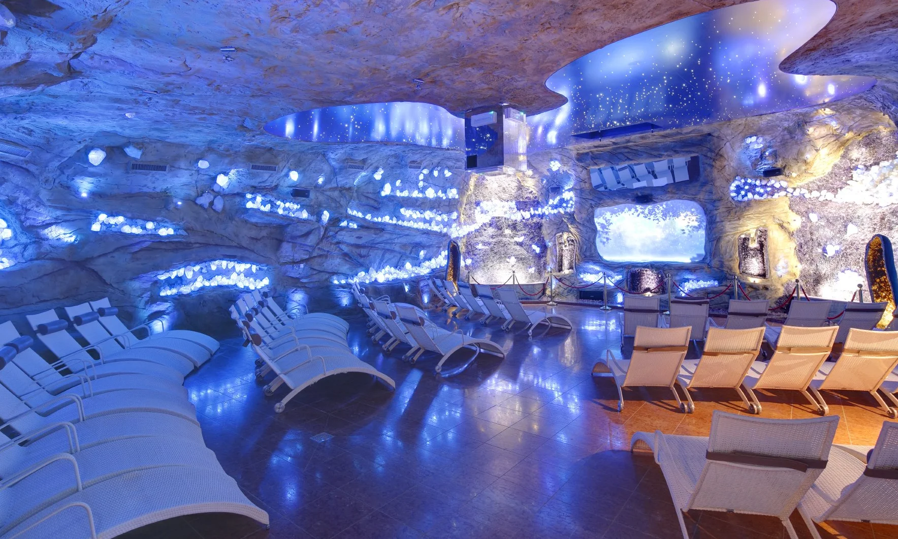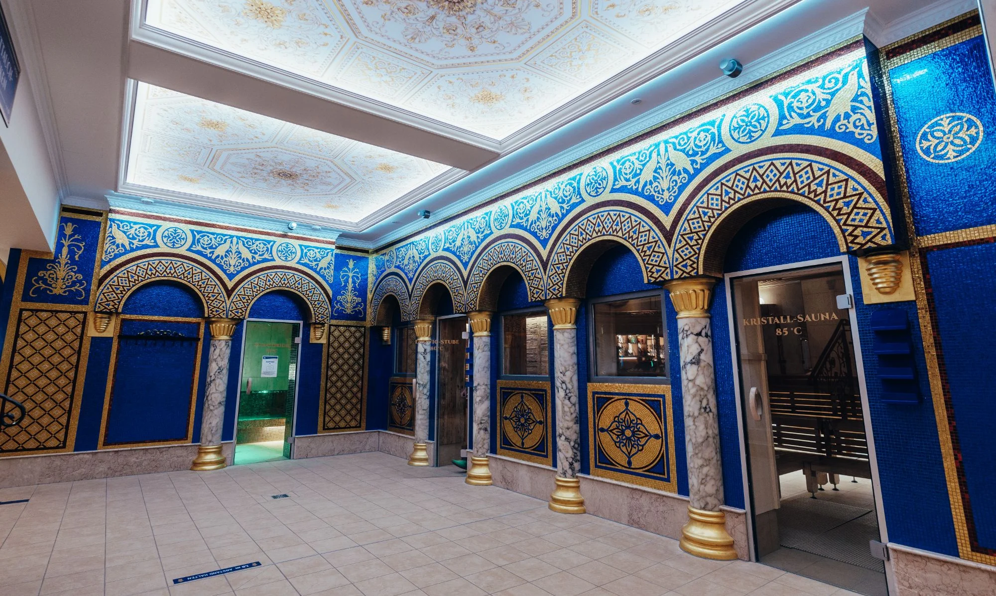In den sechs unterschiedlichen Natron- und Solebecken finden Sie Wasser mit einem Solegehalt von 2,5 bis 24 % und Temperaturen zwischen 32 bis 36°C. Das Wasser wird mit der speziellen Grander-Technologie aufbereitet und ist somit belebt und vitalisierend. Das Angebot wird ergänzt durch fünf Saunen und ein Dampfbad zwischen 50 und 100°C.